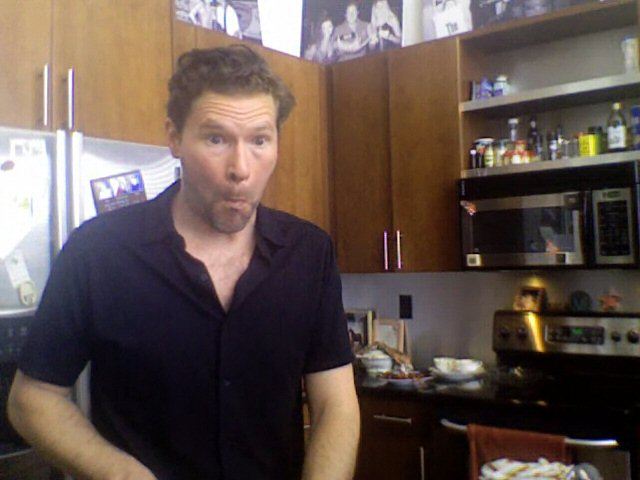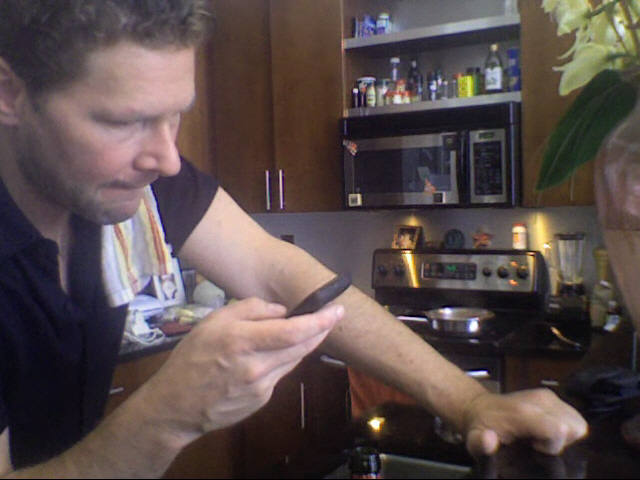Sunday morning we were up early for last minute cleaning (a.k.a. throwing everything without a home in the closet) before diving in to prep. David set up his laptop for a Skype connection with his parents in Augusta, and they were able to sit in and watch the culinary madness via Web-cam (I should add, having a camera follow you as you run around like a chicken may not be the best first meeting with your boyfriend’s folks, if you are trying to impress them.)