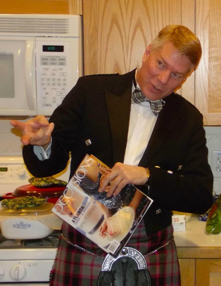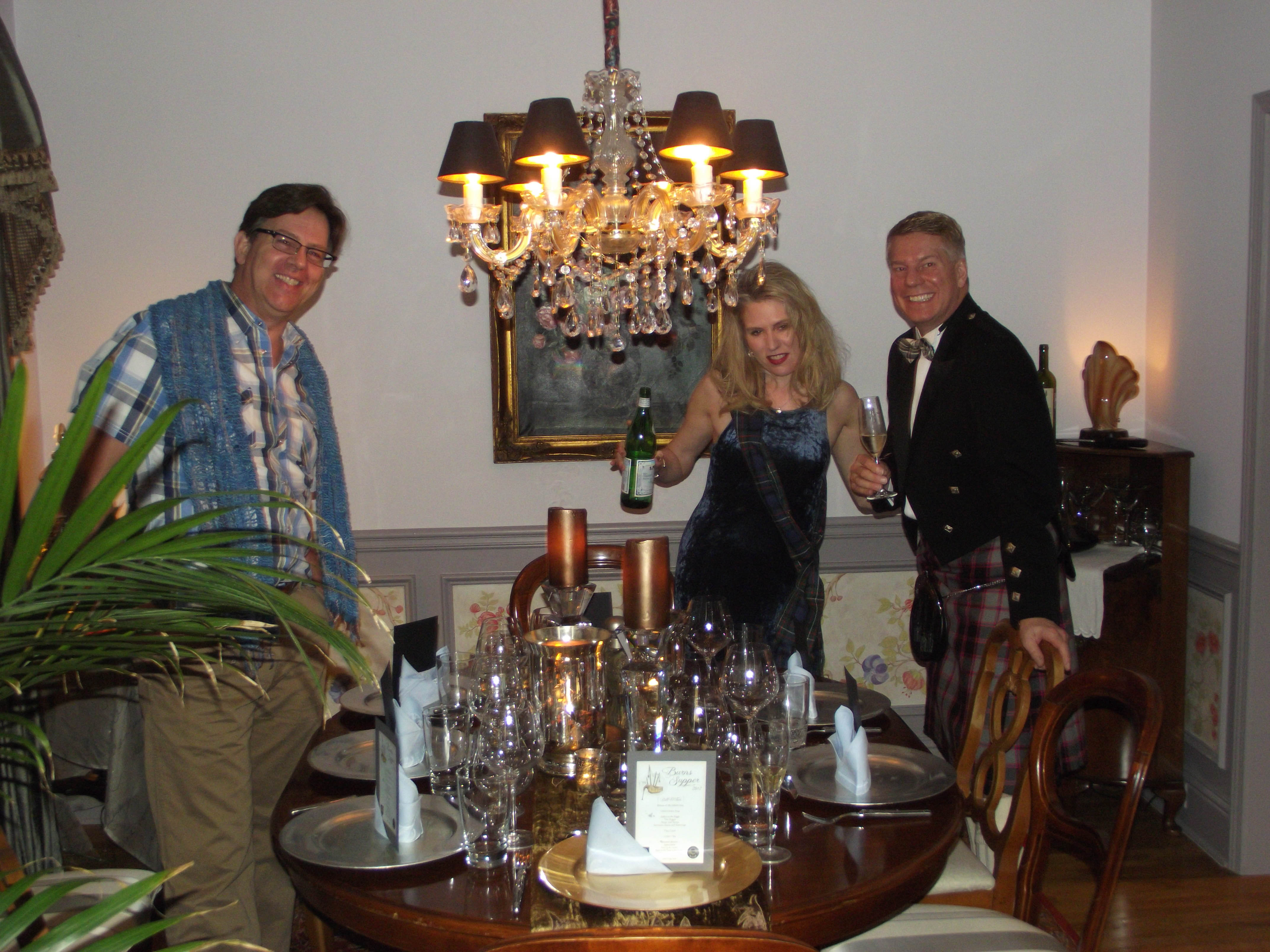 As always with our gatherings, we enjoyed a wonderful evening with such fantastic friends.  Everyone raved over the food and the wine and scotch flowed freely (yes, you might be sensing the pattern…) David gave another spectacular rendition of the “Address to a Haggis,” Dana provided an eloquent “Toast to the Lassies,” Troy treated us to an acapella song (he has an amazing voice), Tom provided an interpretive dance to “I Could Walk 500 Miles,” and I actually managed to complete my counter-salute to the gentlemen, the “Reply to the Toast to the Lassies.” Further more, upon my rousing invocation of “Down with trousers, up with kilts!” my husband flashed me.