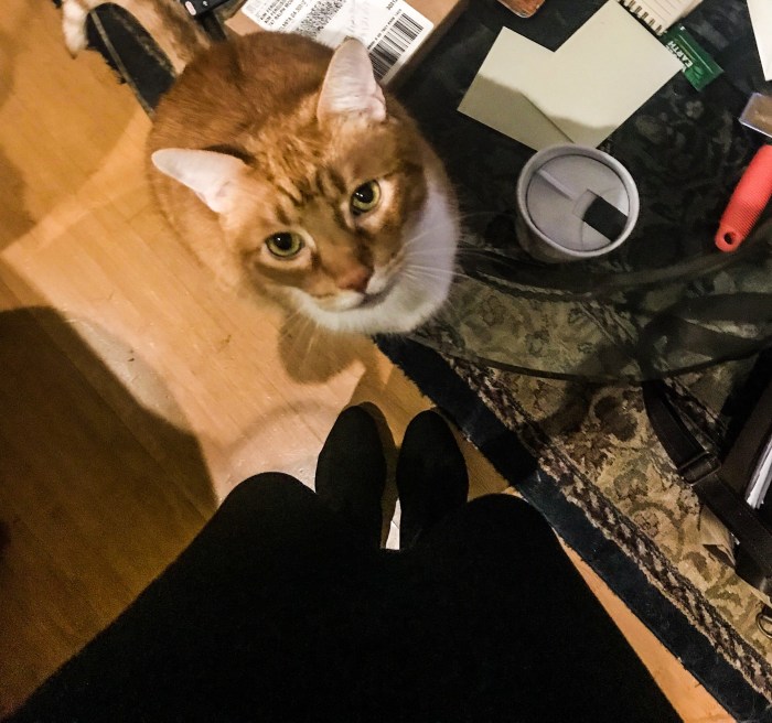 The other day, I shared with you Cat Rule 417, which addresses the ratio of unsolicited feline affection to the amount of black clothing worn by the feline’s human.  Corollary 1 of this rule further enhances the proportionate values by cost and use proximity.